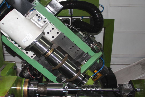 機(jī)床砂輪架上安裝有兩個(gè)CBN砂輪部件,分別完成轉(zhuǎn)子槽的粗/精磨削,砂輪架可沿軸向移動(dòng),使CBN砂輪移動(dòng)至對應(yīng)的磨削工位。通過對工件的粗磨及精磨,是一種大幅提高螺桿/螺旋轉(zhuǎn)子工件齒型型線各項(xiàng)精度指標(biāo)的先進(jìn)工藝方式。